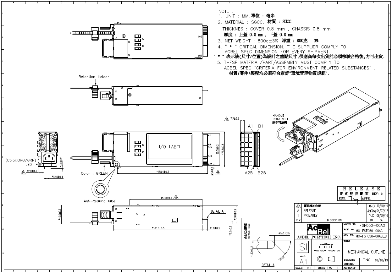 AcBel R1CA2122A-P 是一款高效能、符合 80 PLUS Platinum 認證的 1200W AC-DC 熱插拔伺服器等級電源模組。該模組支援 +12V 主電源輸出與 +12VSB 輔助電源,能單獨運作或組成 N+1 冗餘系統,支援主動負載分擔設計,具備卓越的穩定性與可靠性。