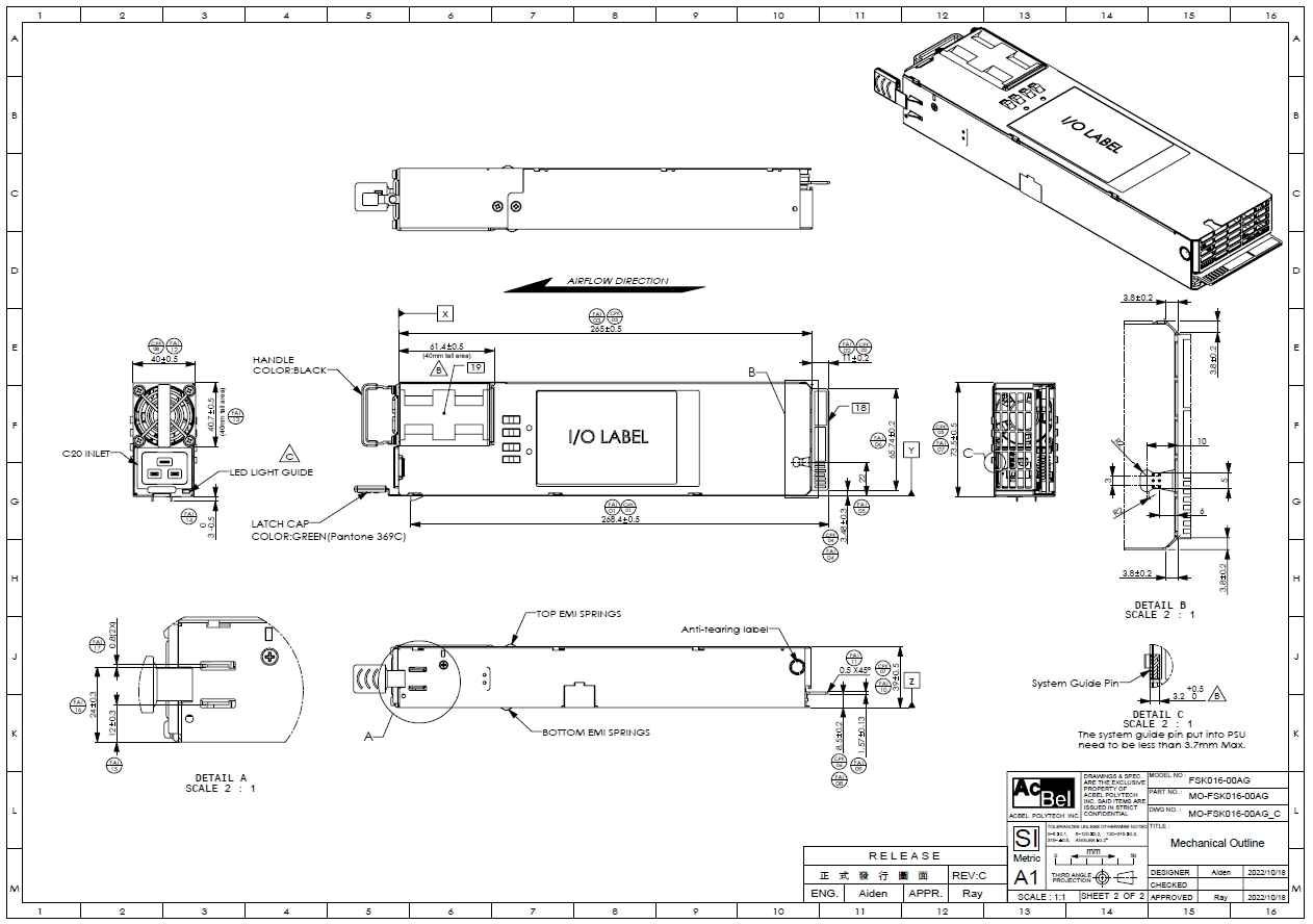 總體而言,AcBel FSK016 (R1CA2302A) 系列為一款高度整合、效率卓越並具備冗餘容錯設計的伺服器電源方案,特別適用於高密度、高效能計算伺服器與雲端應用設備,是企業級資料中心理想的電力解決方案。