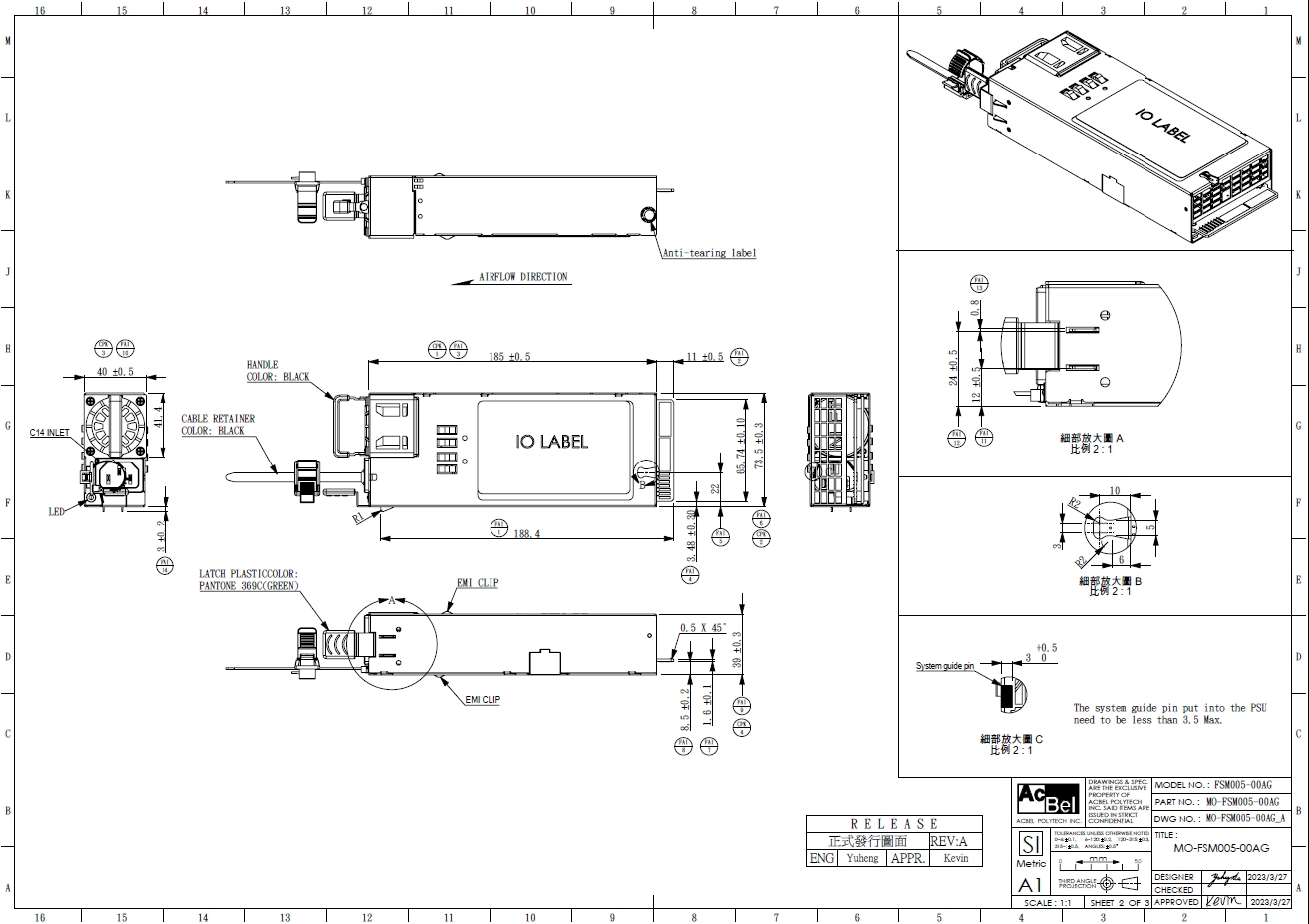 這款 AcBel FSM005 系列 2000W CRPS 電源兼具 高效能、高可靠度與智慧管理,適合任何需要高可用性與高運算效能的資料中心與伺服器應用。