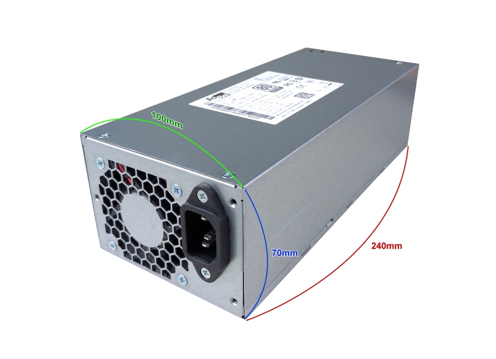 尺寸為 240 x 100 x 70 mm,設計緊湊、易於安裝,產品標籤上明確標示輸入參數、輸出功率與製造資訊,方便用戶識別與維護。FSD036-000G 是伺服器、工作站、網通設備與高效能工業設備的理想電源選擇。